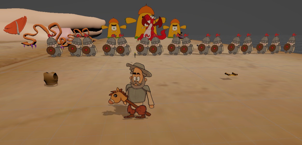 Control Don quijote and Sancho panza in a amazing adventure out of the book